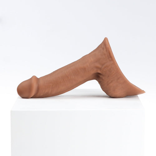 Axolom Handy is a 6.26-inch stand to pee packer. It's a big-sized packer for FTM trans. The scrotum texture is clear and the head/nut looks perfect. The gear is ideal for those who looking for big packers to carry with them. The price is affordable and It's just $79. The weight is 175 grams. It's one of the best STP packers in our store. Here are the dimensions: