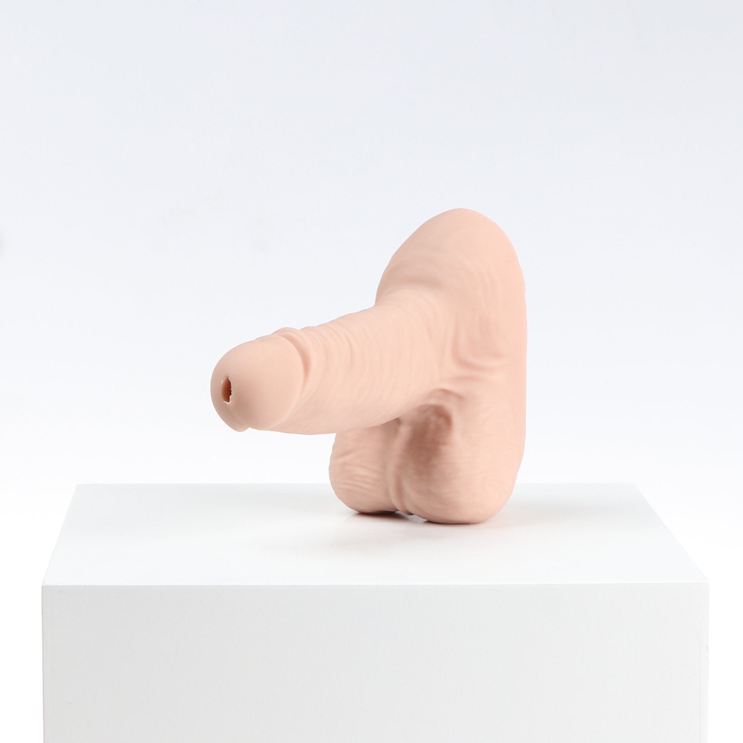 Axolom Thinker is a 5.51-inch stand to pee packer. It's a medium size packer for FTM trans. The scrotum texture is sharp and the head/nut looks small. The gear is ideal for those who looking for small packers to carry with it. The price is affordable and It's just $59. The weight is 190 grams. It's one of the cheapest STP packers in our STP packers list. Here are the dimensions: